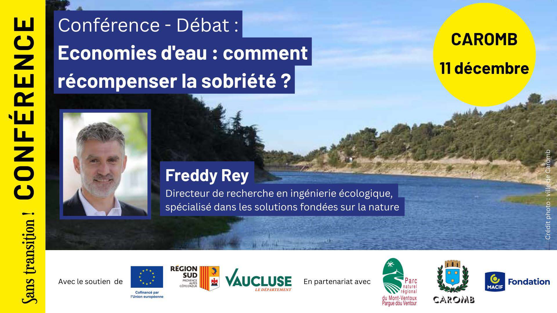 Second opus du projet "Les pieds dans l'eau", après les rencontres avec Charlène Descollonges en septembre à Mazan, cette nouvelle conférence-débat avec Freddy Rey, directeur de recherche à l'INRAE, s'est tenue le jeudi 11 décembre à 18h30 à Caromb (84).
