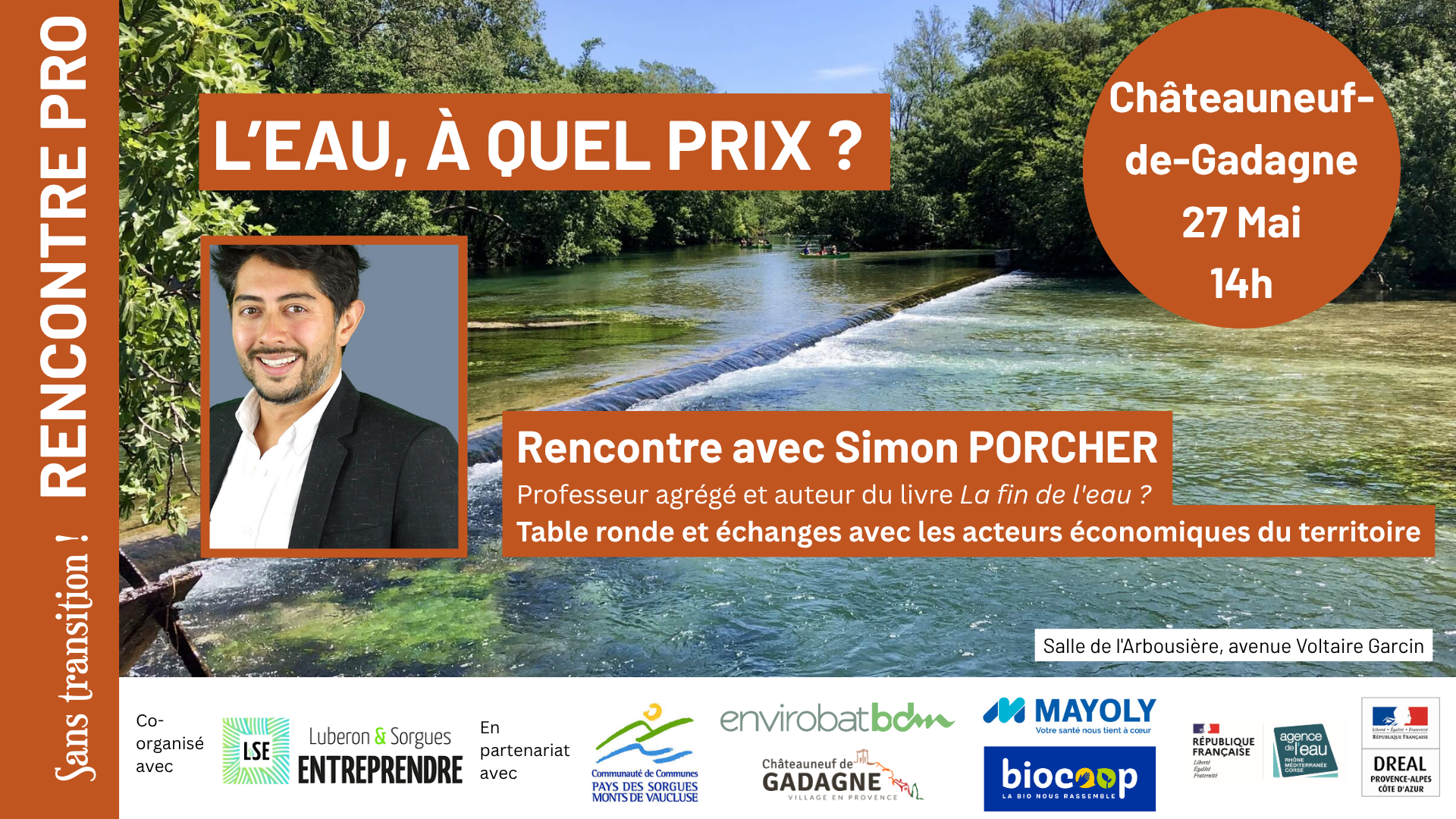 Sans transition! et le réseau Luberon Sorgues Entreprendre vous proposent, le mercredi 27 mai à Châteauneuf-de-Gadagne, cette rencontre destinée aux professionnels du territoire, en compagnie de Simon Porcher, et intitulée :